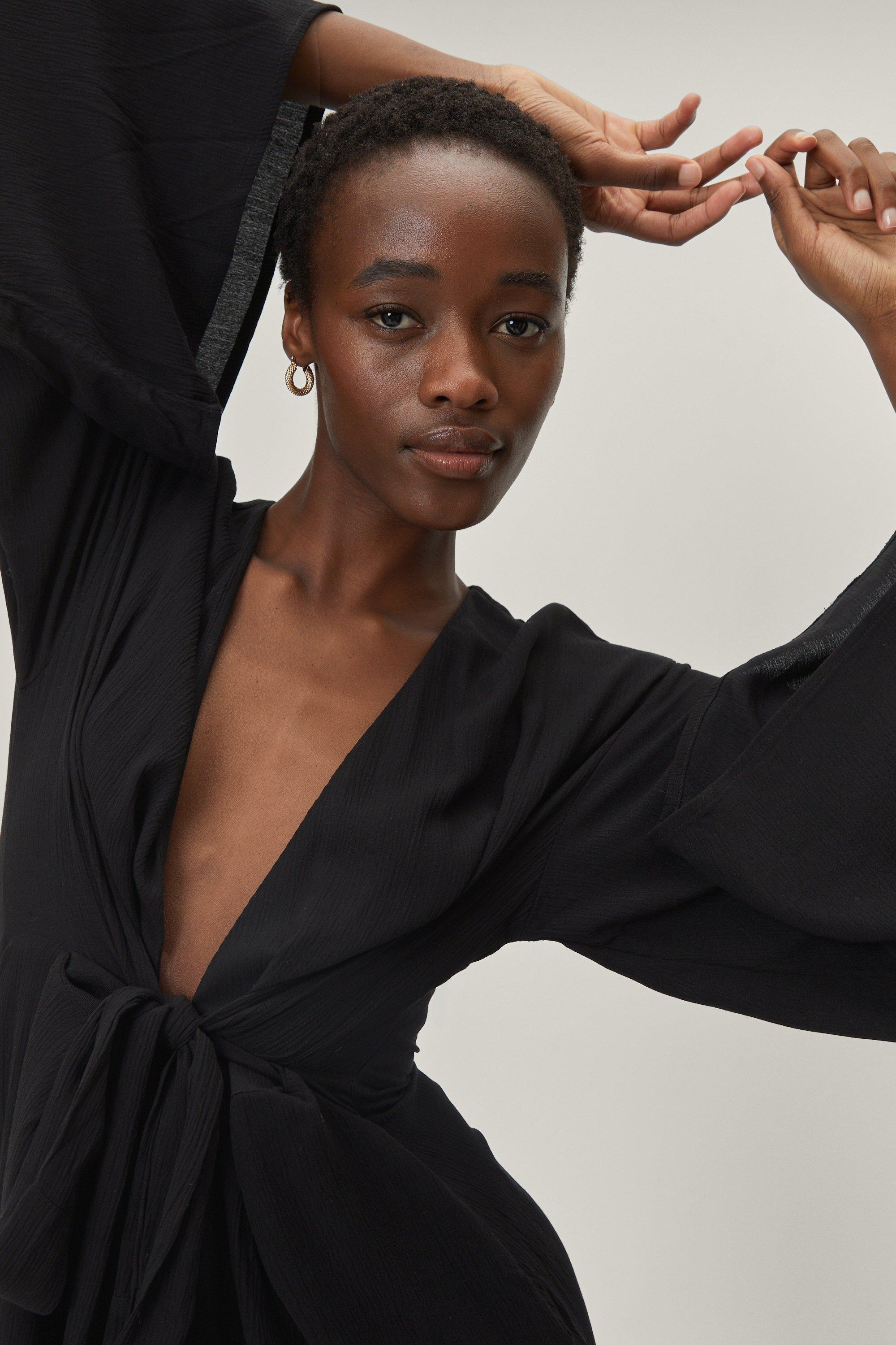 Boohoo kimono sleeve dress clearance, Women s Plus Kimono Sleeve Tie Waist Wrap Dress Boohoo UK clearance