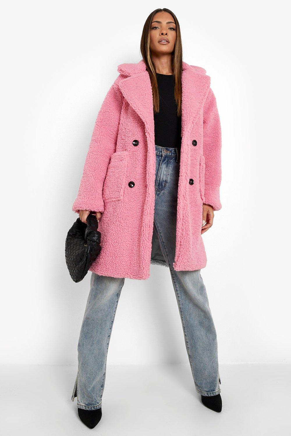 Boohoo pink teddy coat clearance, Women s Teddy Faux Fur Belted Coat Boohoo UK clearance