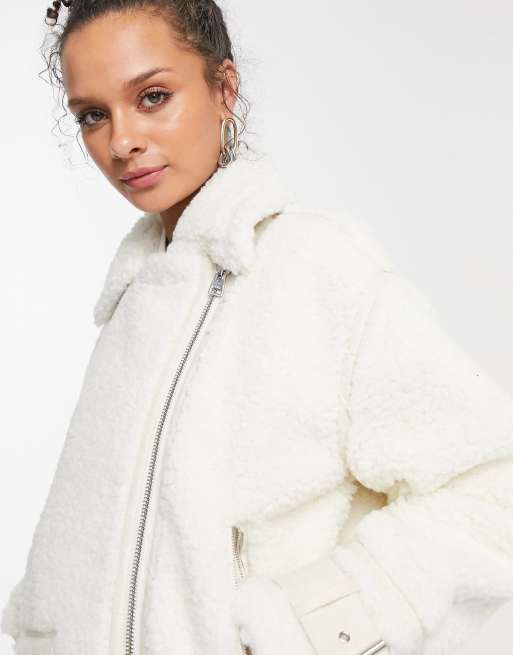 Ecru Borg Biker Jacket from Topshop on 21 Buttons