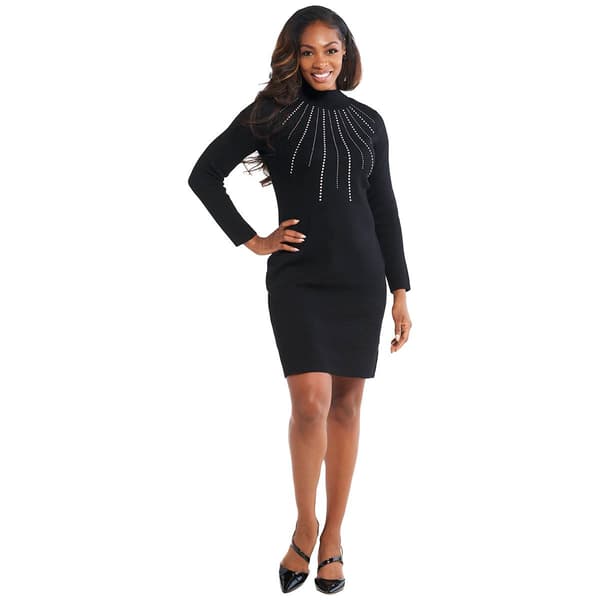 Womens Nina Leonard Mock Neck Stud Sunburst Sweater Dress Boscov s