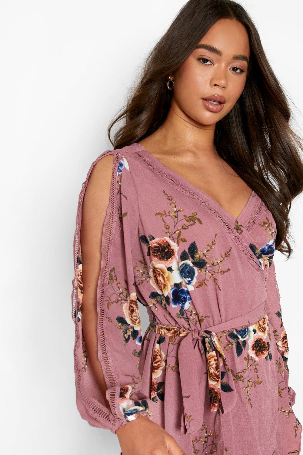 Boutique Floral Split Sleeve Wrap Dress Wrap dress Bodycon