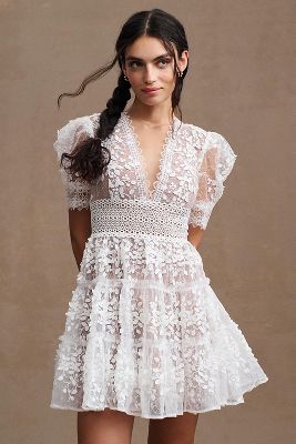 Bronx and Banco Megan Short Sleeve Lace V Neck Tiered Mini Dress