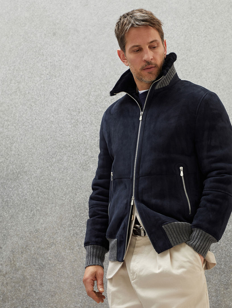 Brunello cucinelli suede bomber jacket clearance, BRUNELLO CUCINELLI Suede Shearling Bomber Jacket Holt Renfrew clearance