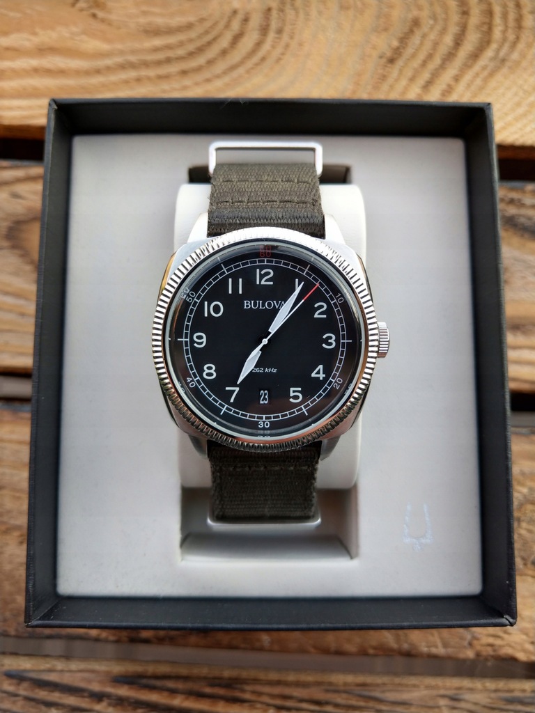 Bulova Military UHF Sweep Seconds 262kHz Nato Strap Watch 96B229 PLEASE READ