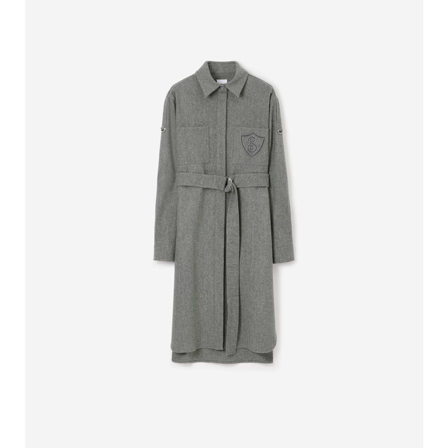 Letter Graphic Stretch Wool Shirt Dress in Light grey melange Women Burberry Official