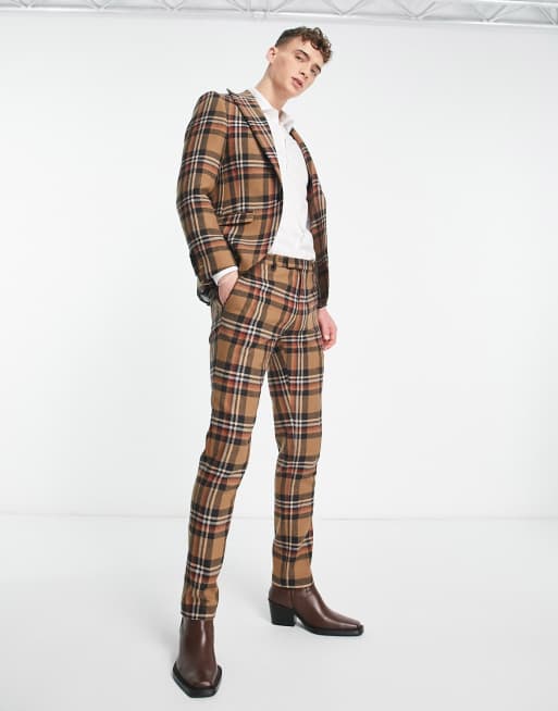 Twisted Tailor nevada skinny suit pants in beige and blue tartan check