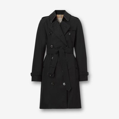 The Mid length Kensington Heritage Trench Coat in Black Women Cotton Gabardine Burberry Official
