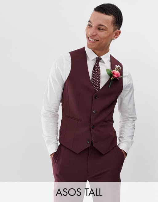 Burgundy suit waistcoat clearance, ASOS DESIGN Tall super skinny suit waistcoat in burgundy clearance
