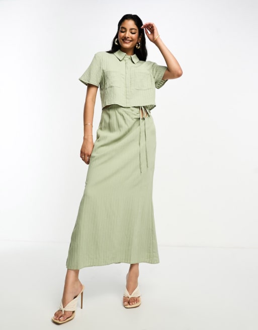 Navine Two Piece Set Button Front Crop Top and Cargo Pocket Mini Skirt Set in Green