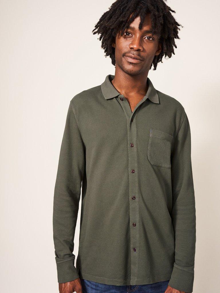 Westbank Button Through Polo in KHAKI GREEN White Stuff