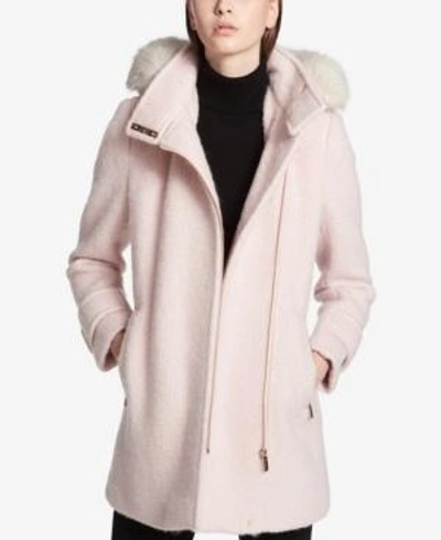 Faux fur trimmed Asymmetrical Walker Coat In Blush