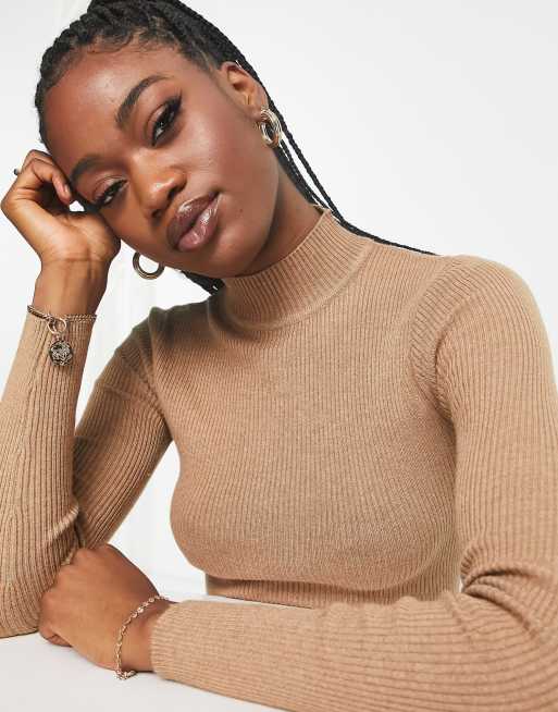 Pull Bear long sleeve funnel neck jumper in camel ASOS