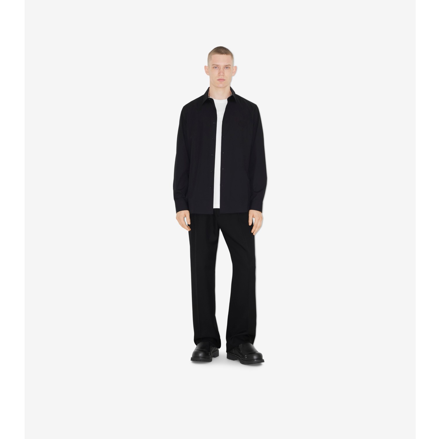 Camicia in cotone stretch Nero Uomo Sito ufficiale Burberry
