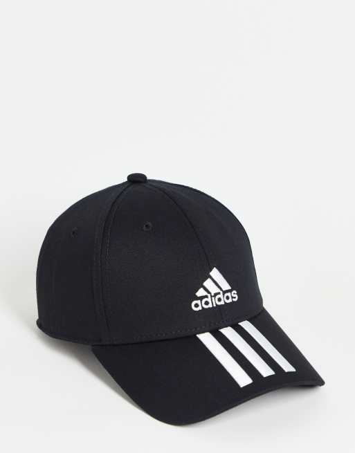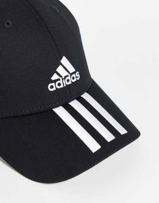 adidas Originals Baseball Cappellino in twill nero e bianco con 3 strisce