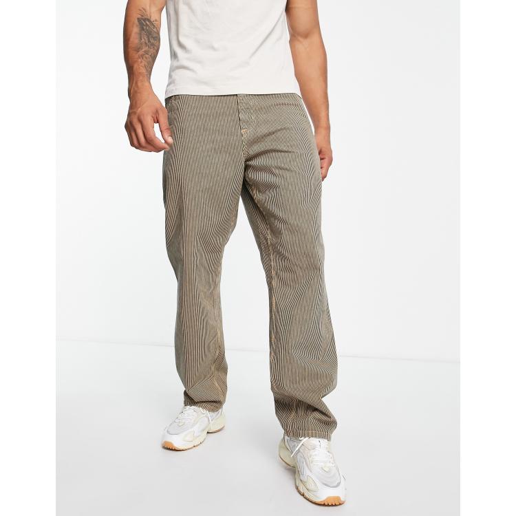 Carhartt WIP single knee hickory stripe straight leg trousers in brown