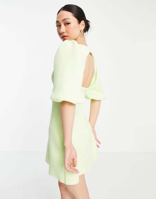 Ceithan dress club monaco clearance, ASOS DESIGN puff sleeve cut out aline mini dress in lime ASOS clearance