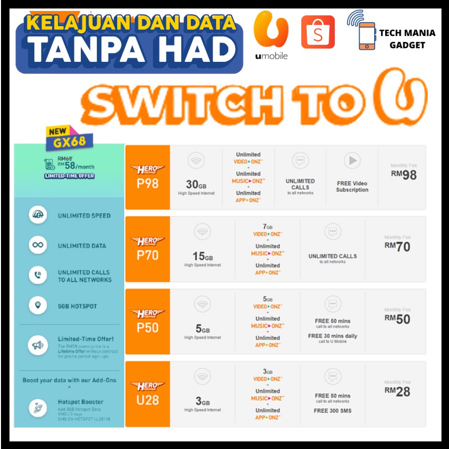 UMOBILE POSTPAID PLAN GX50 GX68 UNLIMITED DATA Shopee Malaysia