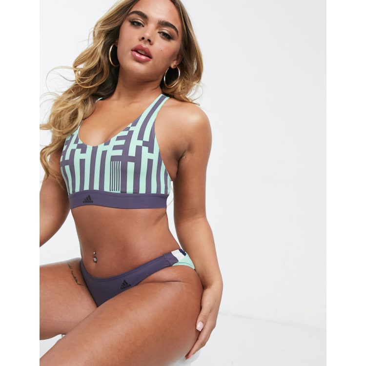 adidas Sportswear Bikini in Lila mit Blockfarben Details