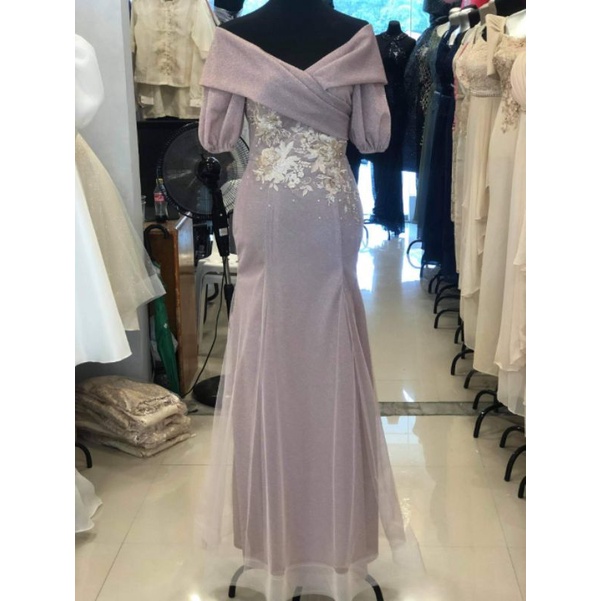 Champagne color gown for principal sponsors clearance, Puffed sleeve principal sponsor mother of Bride Ninang Dress clearance