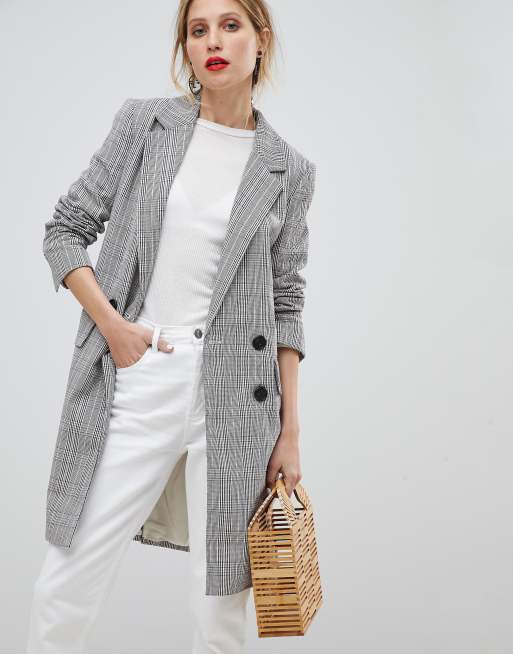 Check long blazer clearance, Black Check Boucl Long Sleeve Blazer New Look clearance