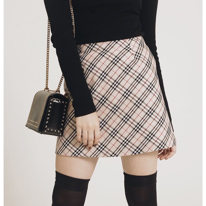 check mini skirt beige pine