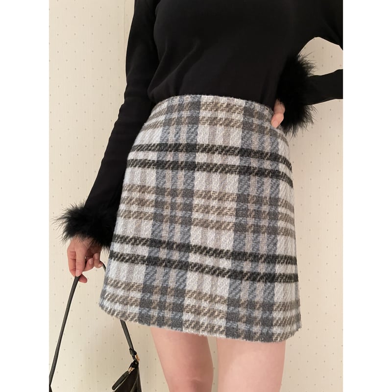tweed check mini skirt ice blue pine