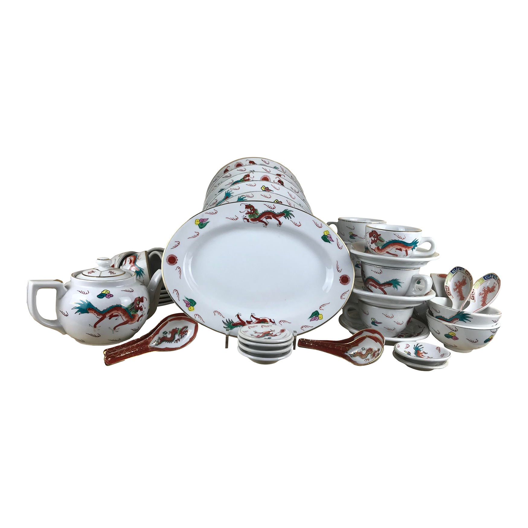 1960s Red Dragon Chinese Restaurant Dishes Set for 6 Plus More