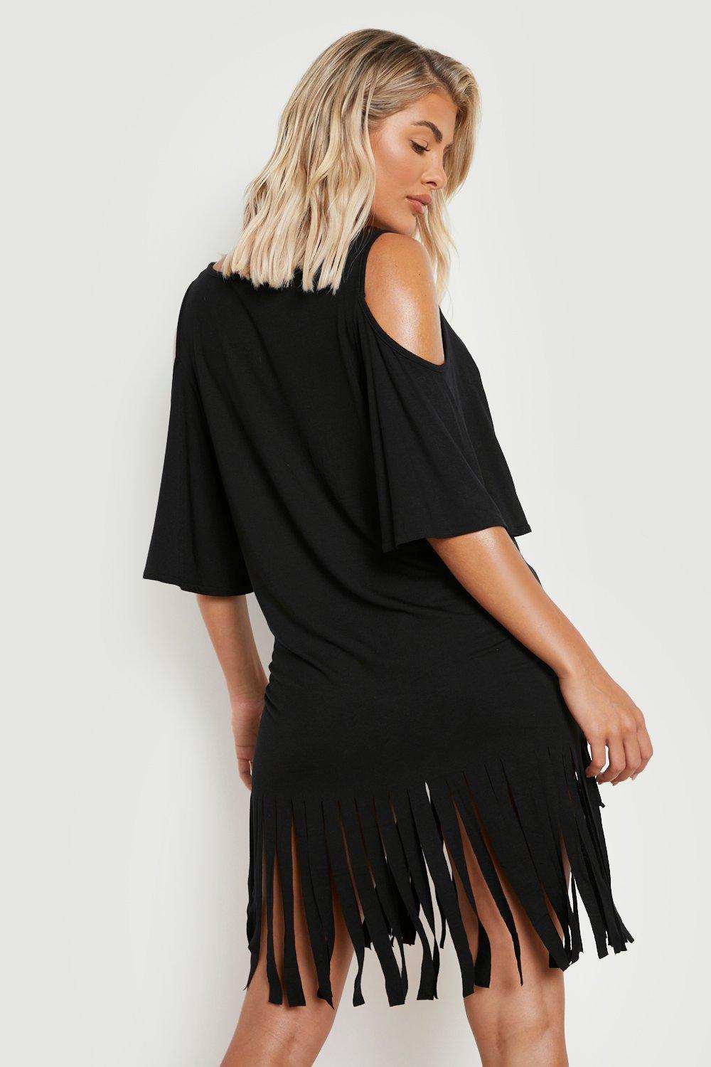 Cold Shoulder Cut Out Tassel Beach Dress boohoo