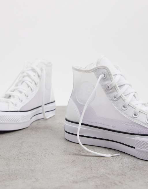 Converse Chuck Taylor Baskets plateformes montantes en tulle en exclusivit Blanc