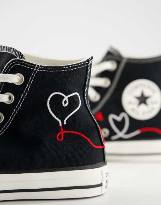 Converse negras altas xl clearance, Converse Chuck Taylor All Star Hi trainers in black with love print clearance