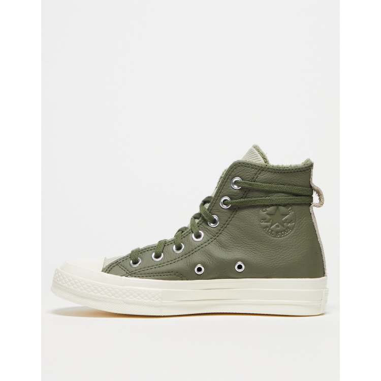 Zapatillas de deporte verde militar de cuero con forro de piel sint tica Chuck 70 Hi de Converse