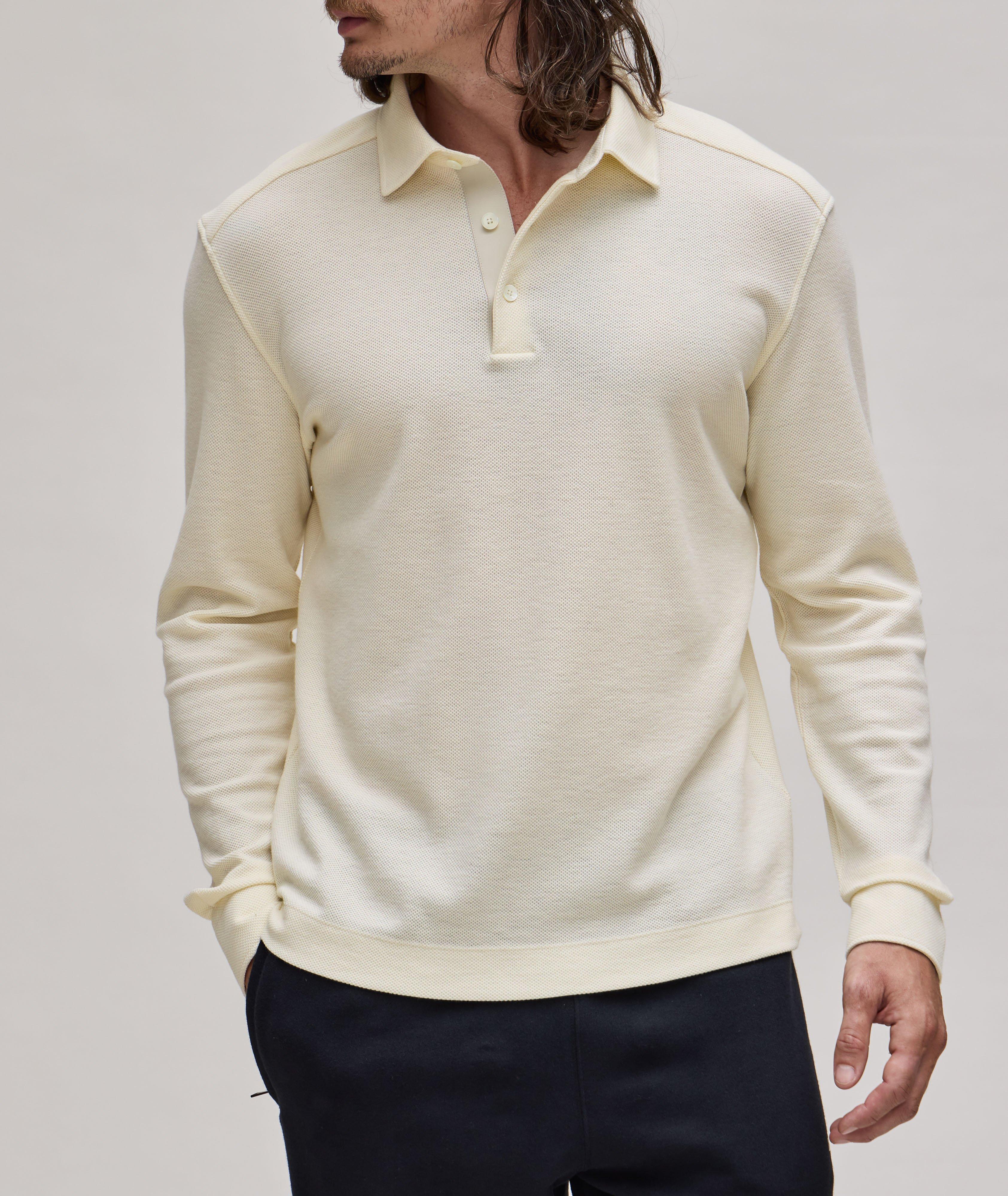 Cream long sleeve polo shirt clearance