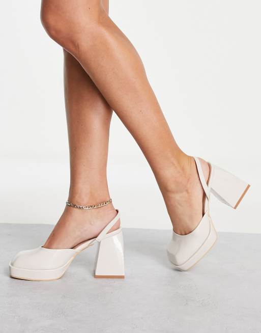 Cream shoes block heel clearance, Truffle Collection block heel sling back shoes in cream clearance