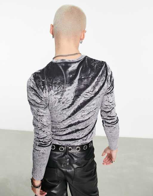 COLLUSION crushed velvet long sleeve top in grey ASOS