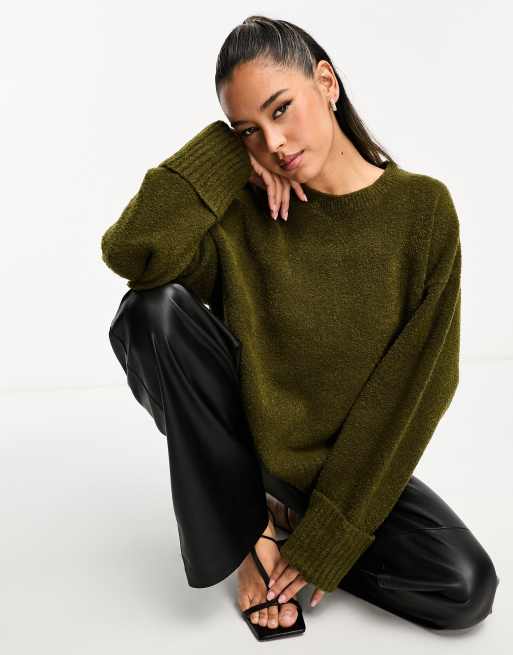 Pretty Lavish oversized borg knit sweater in dark olive
