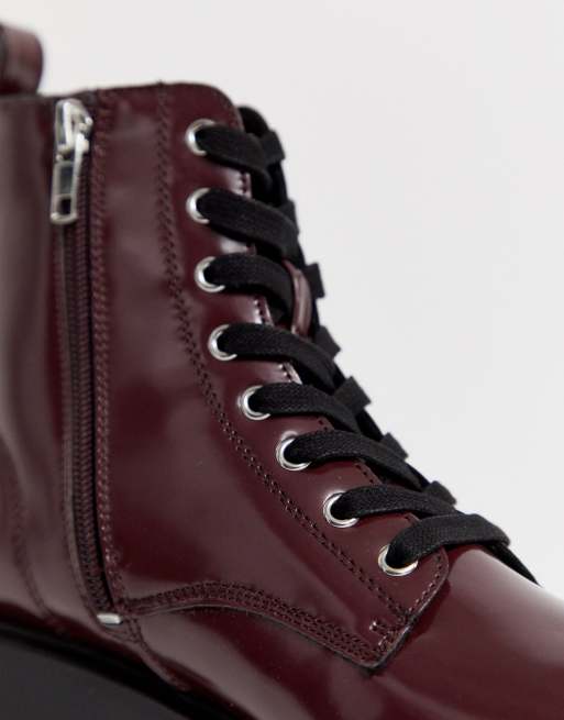 Dark red boots womens clearance, New Look lace up flat boots in dark red clearance
