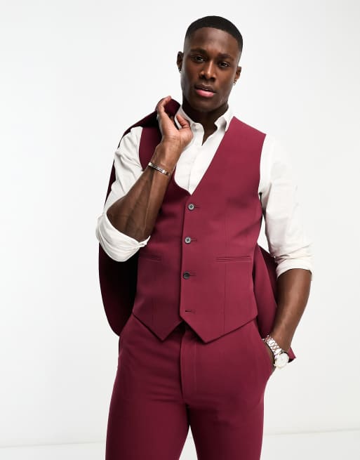 ASOS DESIGN super skinny suit waistcoat in dark burgundy ASOS