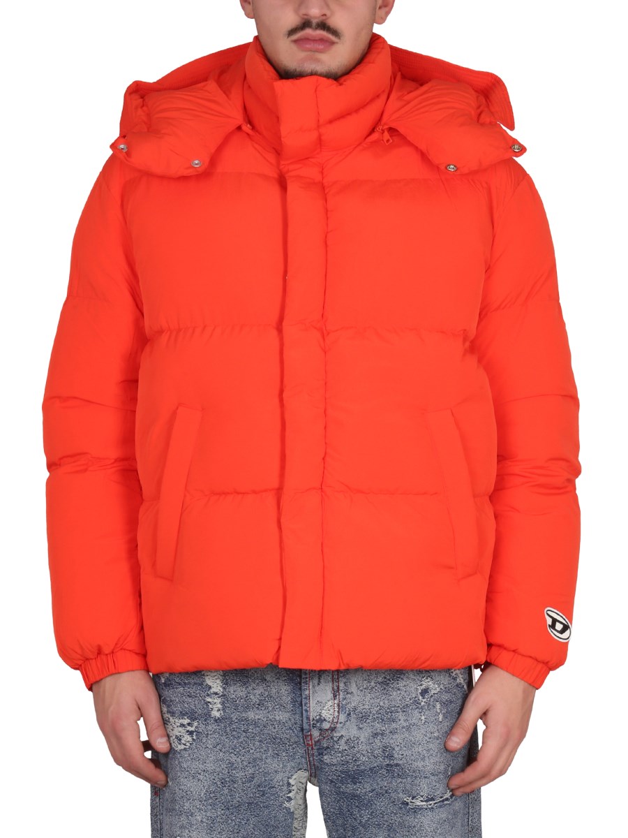 Men s Hooded nylon puffer jacket with piping W SCOTTYS Diesel