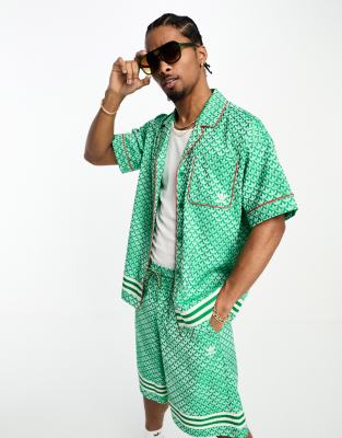 adidas Originals adicolor 70 s monogram satin short sleeve shirt in green