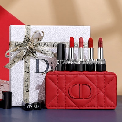 Dior lipstick bag clearance, Dior Dior Limited New Year Blue Gold Lipstick Red Leather Bag Set clearance