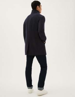 Epping Dk Navy Knitted Coat Button Up Stand Collar Coats