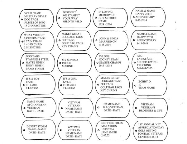 Dog Tag Ideas and Samples NOT FOR SALE DOG TAG DEALER