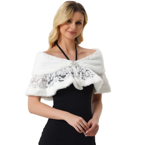 Allegra K Women s Wedding Lace Trim Evening Faux Fur Shawl Target