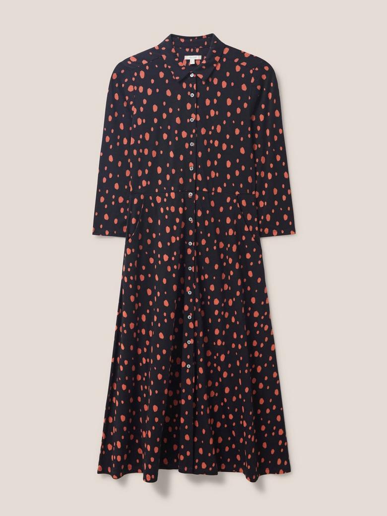White Stuff Women s Rua Jersey Shirt Dress Ladies 3 4 Sleeve Button Down Outfit