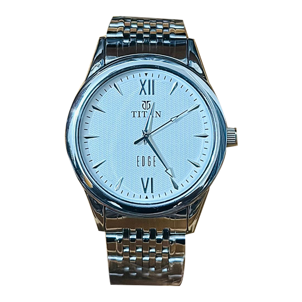 Titan EDGE Stainless Steel Analog Wrist Watch For Men White and