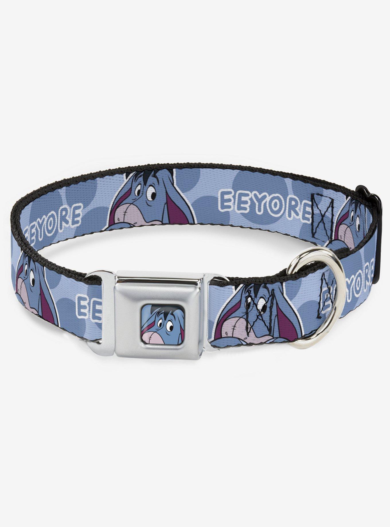 Disney Pet Collar Dog Collar Plastic Buckle Winnie The Pooh Eeyore Text and Expression Close Up Dot Blues 16 to 23 Inches 1.5 Inch Wide