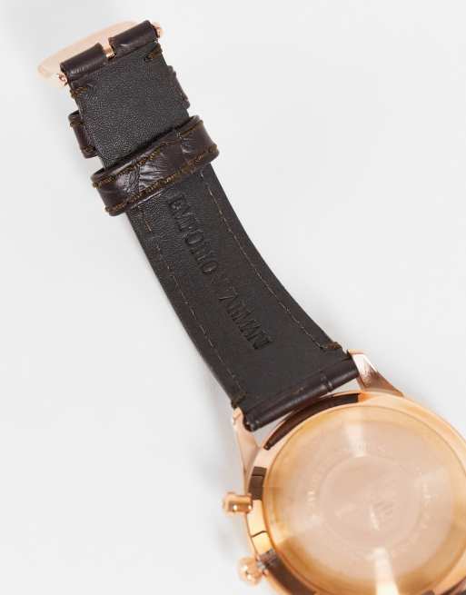 Men s Emporio Armani Watch Brown Leather Band Rose Gold 43MM 345 eBay