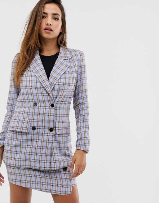 Missguided Ensemble blazer et jupe Carreaux bleus ASOS