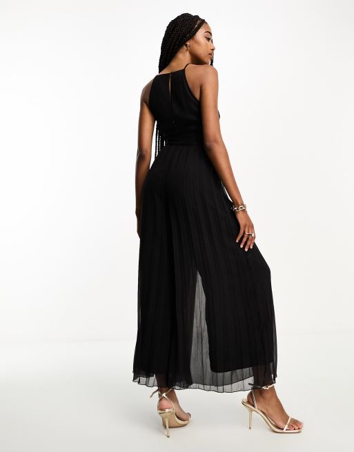 ASOS DESIGN Tall pleated culotte jumpsuit with belt in black