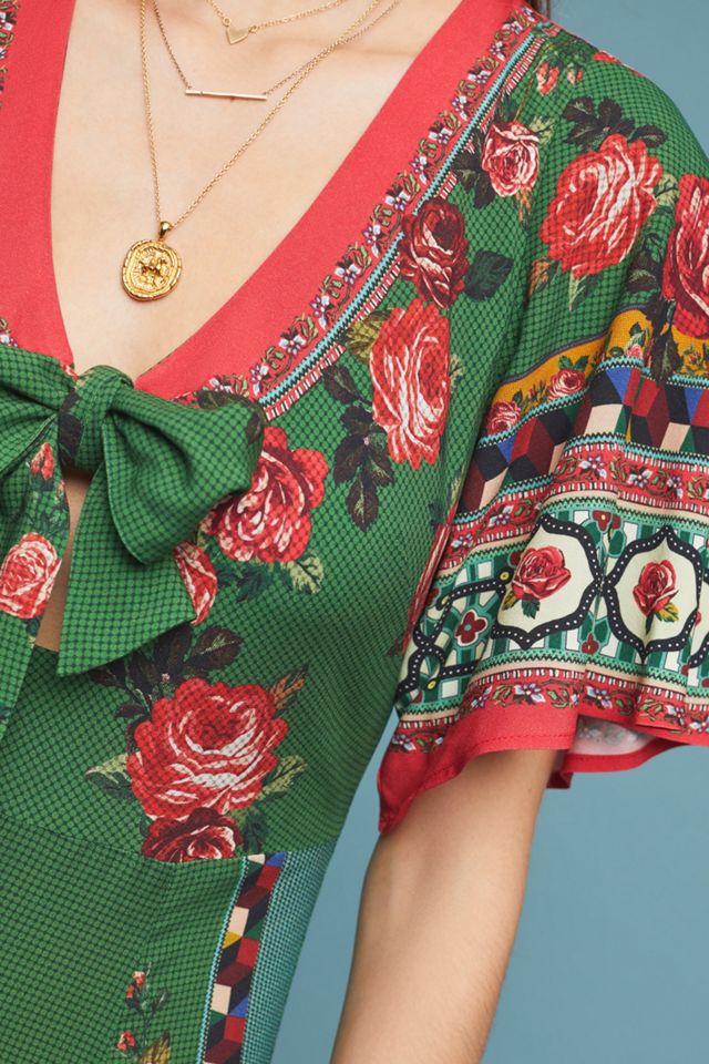 - farm rio embroidered front knot dress